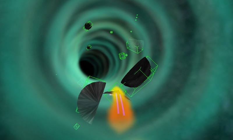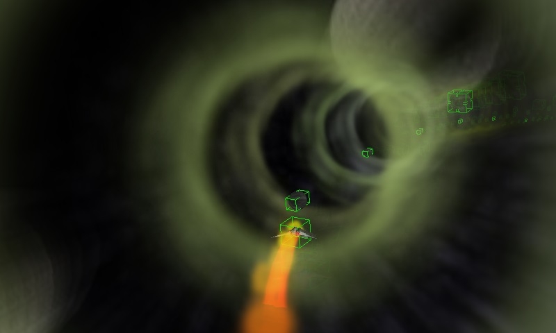 Neo Invader is a third-person shooter taking place in an interstellar tunnel.